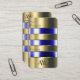 Make a lasting impression with this elegant and quality business card template featuring an eye catching gold can with glass and blue fluids optics. Matching the look of a faux 3D engraved font. Everything is a flat print!!