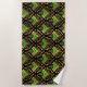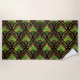 Gold and green Art Deco pattern on black Beach Towel