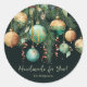 Elegant "Handmade for You" Christmas holiday stickers feature pine branches, green and gold Christmas ball ornaments and ribbons on a black background with your name in chic lettering, perfect for your festive holiday gathering or for your gift-giving. MATCHING items in our collection.