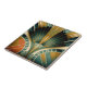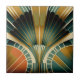 An elegant gold and green decorative art deco ceramic tile in a symmetrical simple pattern