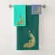 Gold and green peacock glimmering brightly bath towel set