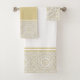Gold and grey modern mandala patterned towel set.
