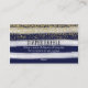 Diaper raffle tickets with faux gold glitter design and navy blue stripes watercolor background.