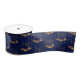 Gold and Navy Blue Christmas Bells Satin Ribbon