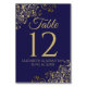Gold and navy Blue Elegant Filigree Wedding Table Number