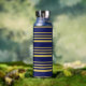 Gold and navy stripes patterned water bottle