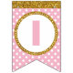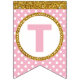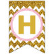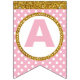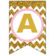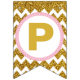 Gold and Pink Happy Birthday Bunting Flags, Custom Flags