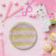 Gold and Pink Stripes Bokeh Confetti Paper Plate