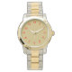 You will show off good taste wearing this gold-faced and red-numbered watch.