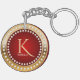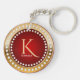 Gold Circle, white diamonds with a red background, and customizable monogram. Elegant glam design. Diamonds are just an image.