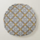 Gold and Silver Laced Grey Medallions Pattern Round Pillow
