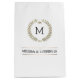 Silver and gold laurel wreath frame with a customizable monogram on a white background.