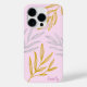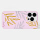 Features hand-drawn botanical leaves in gold and silver simulated foil, on a pink background. Personalize with a name.