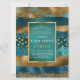Gold and teal brush strokes and confetti wedding bridal shower Invitation. This elegant design features brush paint strokes in teal and gold and confetti. Your text is in a teal blue frame with gold border. It is ideal for a winter wedding.