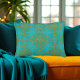 Gold and Turquoise Damask Style Pattern Decorative Pillow