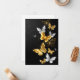 Gold, jewellery and white butterflies on black background. Golden butterfly.