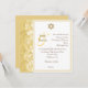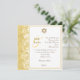 Gold and white damask brocade Jewish wedding invitation, a gorgeous gold and white brocade design in front and stitched effect inlay on the back of this elegant and stylish invitation, at www.zazzle.com/DatesDuJour.