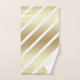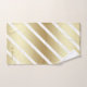 An elegant design, this bath towel set features a luxurious gold and white diagonally striped design. Your name is written in lovely cursive font using the provided template. The set includes a wash cloth, hand towel and bath towel. Order yours today!
