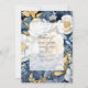 Gold and white floral wedding invitation with accents of navy blue. Ideal for a garden wedding.