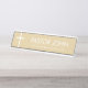Minimalist desk name plate featuring a simple, modern cross design in gold and white. Suitable for pastors, priests, ministers, reverends, Christian missions, church administration, and religious organizations. Use the easy template to add a name, inspirational quote, or Bible verse. Edit to change the colours to any combination you wish. Find more spiritual, faith-based gifts and matching office supplies in our shop. ♡ Idyllfire