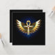 Golden Egyptian ankh with patterned, shiny wings on a black background. Magic symbol.