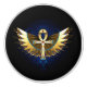 Golden Egyptian ankh with patterned, shiny wings on a black background. Magic symbol.