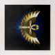 Golden Egyptian ankh with patterned, shiny wings on a black background. Magic symbol.