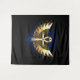Golden Egyptian ankh with patterned, shiny wings on a black background. Magic symbol.