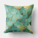 Gold Aqua Mermaid Scale Watercolor Pattern Throw Pillow