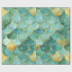 Gold Aqua Mermaid Scale Watercolor Pattern Wrapping Paper