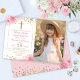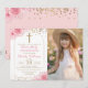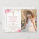 Gold Arch Pink Floral First Holy Communion Photo Invitation