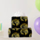 A stylish art deco wrapping paper featuring a pattern of gold 1920's women in profile, over a black background.