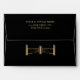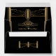 Art déco des années 20, design Great Gatsby. Il présente un style Art déco avec superposition de feuille d'or, ornements et séparateur, de magnifiques polices vintages, sur le noir. Utilisez l'outil Personnaliser pour ajouter vos informations. Pour les articles correspondants, veuillez visiter ma Collection Art Déco 1920 élégant. Vous pouvez customiser votre enveloppe avec votre adresse de retour sur le rabat.