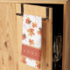 A delicate fall design our Gold Autumn Maple Leaves Custom kitchen towel features maple leaves of fall in shades of gold, terracotta red, yellow and tan mixed together with berries. You can customize by updating the text to make it a personalized gift!