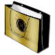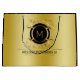 Gold background with elegant swirly gold and black frame for a customizable monogram.