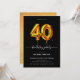 Gold Balloon Black 40th Birthday Invitation