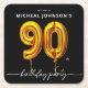 Gold Balloon Black 90th Birthday Party Square Paper Coaster. Celebrate in style with this modern and elegant milestone birthday design featuring bold black and gold accents and a chic foil balloon illustration. Perfect for marking a major life moment, the design combines sophistication with a festive touch. The sleek layout enhances its contemporary appeal, while the luxurious gold details exude timeless elegance. Ideal for milestone birthdays, this design sets the tone for an unforgettable celebration, blending modern aesthetics with classic glamour.