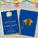 Show off your style and sophistication after graduation with this premium gold foil graduate party invitation. Boasting an eye-catching, real gold foil frame around bright golden balloons, this blue invitation is the perfect way to bring a little extra glitz and glamour to any celebration. The back of the invitation features a large gold graduate's cap in all its glory, sure to make your invitees feel important and excited to join in the celebration.