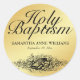 Vintage inspired design. A vintage bible is surrounded by flowers at the bottom of the sticker or envelope seal. Holy Baptism is written in a large script font at the top. The name of the man or woman who is being baptized is in the centre with the date of their baptism. Easy to personalize.