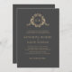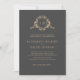 Gold Baroque Crest Dark Grey Monogram Wedding Invitation
