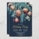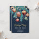 Elegant Christmas holiday party invitation featuring pine branches, green and gold baubles, and ribbons on a dark green background. Chic lettering showcases your event details—perfect for festive gatherings. Matching items available in our collection.