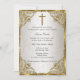 Gold Beige Pearl Damask Cross Baptism/Christening Invitation