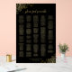 This beautiful seating chart features an elegant design with delicate golden curls and swirls in the corners on a classic black background. The title is written in fancy script calligraphy and reads "please find your table." There is room for up to 300 names in alphabetical order with the names of the happy couple and wedding date at the bottom. Wonderful way to add style and class to your wedding reception while making it easy for your guests to find their seats.