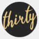 Gold Black 30 Birthday Party Glitter "Thirty" Classic Round Sticker
