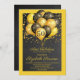Black and gold balloons And confetti 50th birthday party invite. Bold black and gold style design with modern white script typeface. Customize for any age. 30, 40, 60, 70, 80, and over. See the full collection at: The background on the front and back are charcoal grey black chalkboard style, giving it a litle texture and interest.