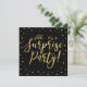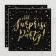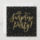 Celebrate your special day with this modern surprise party invitation template. This design features chic gold typography "shhh...it's a surprise party!" with gold confetti graphics. The background colour is set to black but you can change it. Perfect for modern gold & black theme wedding anniversary celebration.