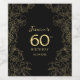 Gold black 60th birthday party wine labels. Featuring modern botanical accents and typography script font. Simple floral design perfect for a stylish bday celebration. Can be customized for any age.