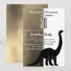 Simple, stylish black dinosaur silhouette in combination with modern rustic gold and white background. Unique, modern, adorable 50th birthday party invitation.