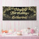 Pretty gold and black festive personalized birthday party banner wall decoration. Amazingly beautiful banner custom printed with the mens or womens guest of honour's name! Black and Gold fairy dust, bokeh and rays of light to celebrate the special birthday!