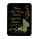Elegant, classy and stylish save the date rectangular shaped magnets featuring a gold and peacock coloured butterfly in shades of aqua blue, red and teal with a golden flourish swirl surrounding it. BACKGROUND COLOR - If you do change it to another colour, the font colour may be changed by selecting the "customize it" button. IDEAL FOR - Any occasion as the wording may be customized, however, they are perfect for "peacock themed wedding", flutterby anniversaries, engagements, weddings, "bridal showers" and proms; for any "spring wedding", "winter wedding", "autumn wedding" or "fall wedding"; and chic business or corporate events, gatherings and functions. CUSTOMIZE IT - Change the wording, the size / colour and style of the font, add / delete templates or move them around to suit your special day. Simply use the "customize it" button to access the full range of editing options. CUSTOM REQUESTS - For colour changes, matching products not shown below, assistance or custom art requests, send me an email on clientrequestrw@gmail.com